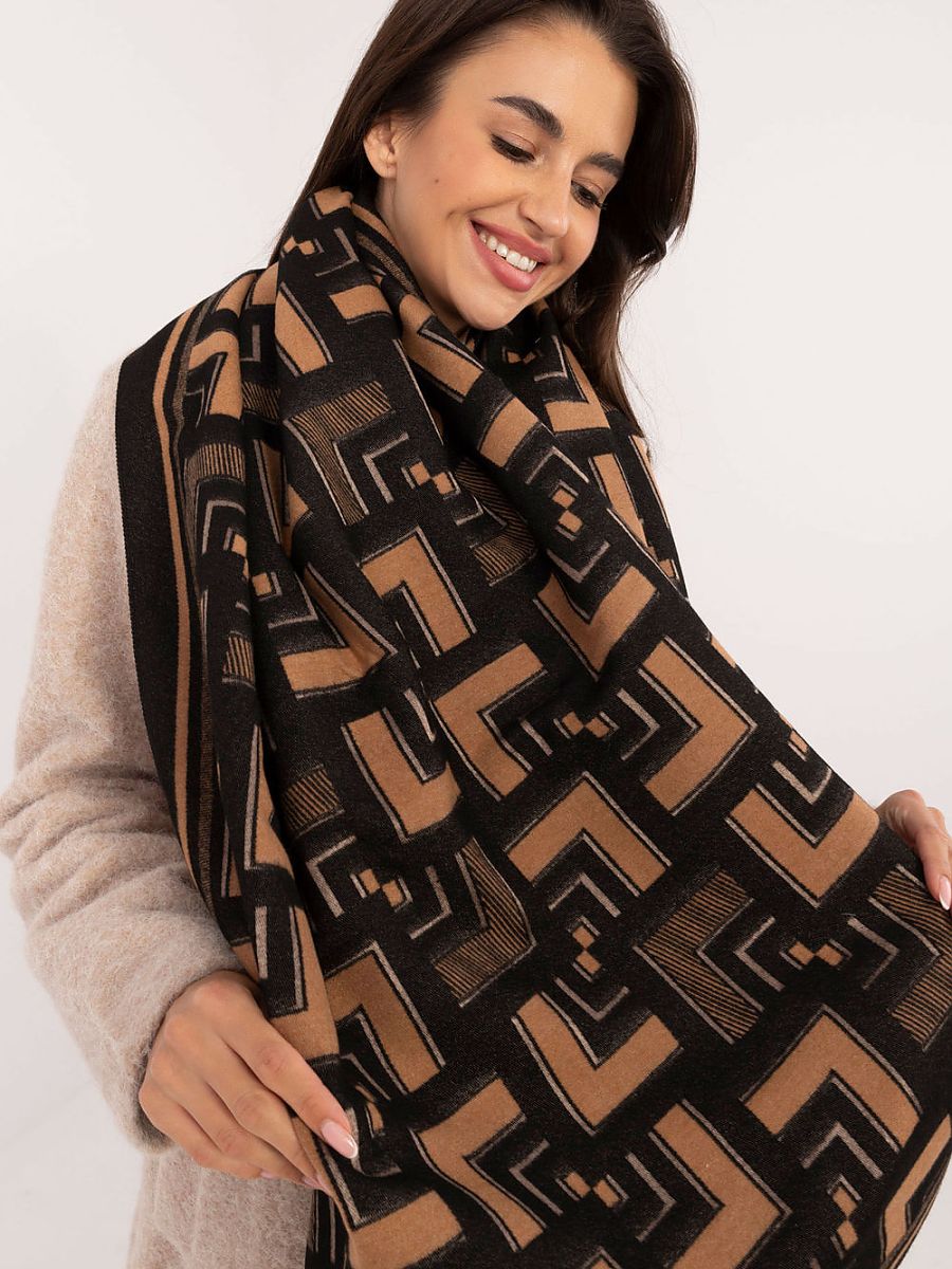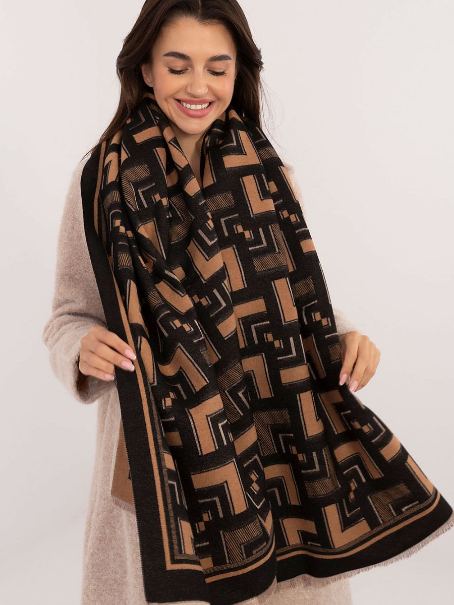 Écharpe élégante de 190 cm de long, fabriquée en viscose douce et agréable au toucher. Il se distingue par un motif géométrique qui ajoute modernité et élégance à toute tenue. Les petites franges subtiles aux extrémités de l'écharpe lui donnent légèreté et originalité. Parfait pour les jours plus frais, il conviendra parfaitement aussi bien aux tenues de tous les jours qu'aux tenues plus élégantes.