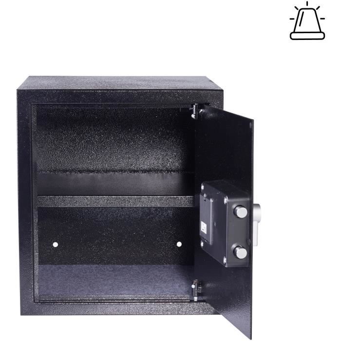 Les coffres-forts électroniques a alarme Yale pour sécuriser vos papiers, ordinateurs portables, passeports, cartes bancaires ou bijoux. Ils utilisent une serrure électronique programmable de 3 a 8 chiffres générant +100000 combinaisons. Les coffres forts sont livrés avec 2 clés de secours, piles et kit de fixation.