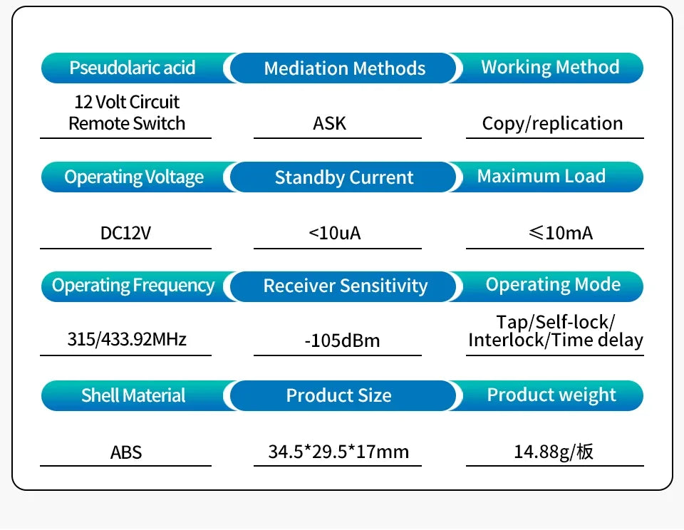 Contrôlez facilement vos appareils à distance grâce à cet interrupteur sans fil 433MHz. Idéal pour portail, éclairage, serrure électrique ou projet DIY.