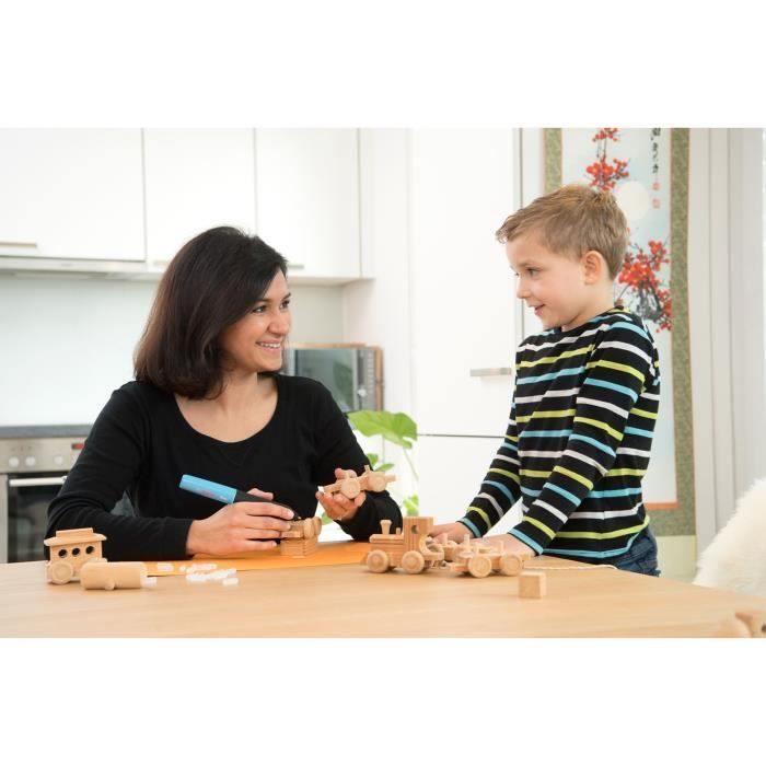 Le pistolet a colle sans fil Bosch Gluey est compact et polyvalent pour différentes utilisations telles que la réparation du quotidien, les créations originales et le bricolage. Avec sa forme ergonomique, il assure une prise en main parfaite lors de son utilisation. Il est livré avec 20 bâtonnets de colle et deux piles rechargeables respectueuses de l'environnement.