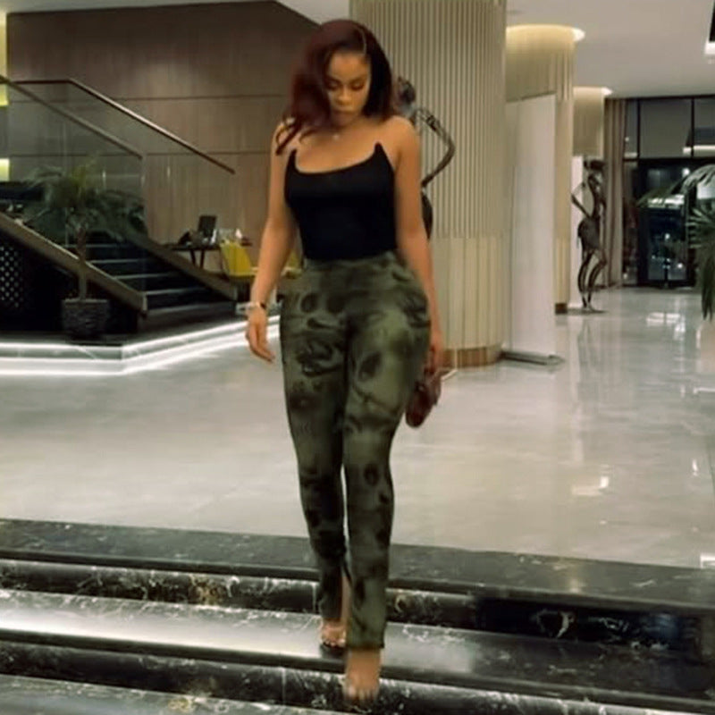 Pantalon Femme Imprimé Taille Haute – Coupe Slim Stretch avec Fentes