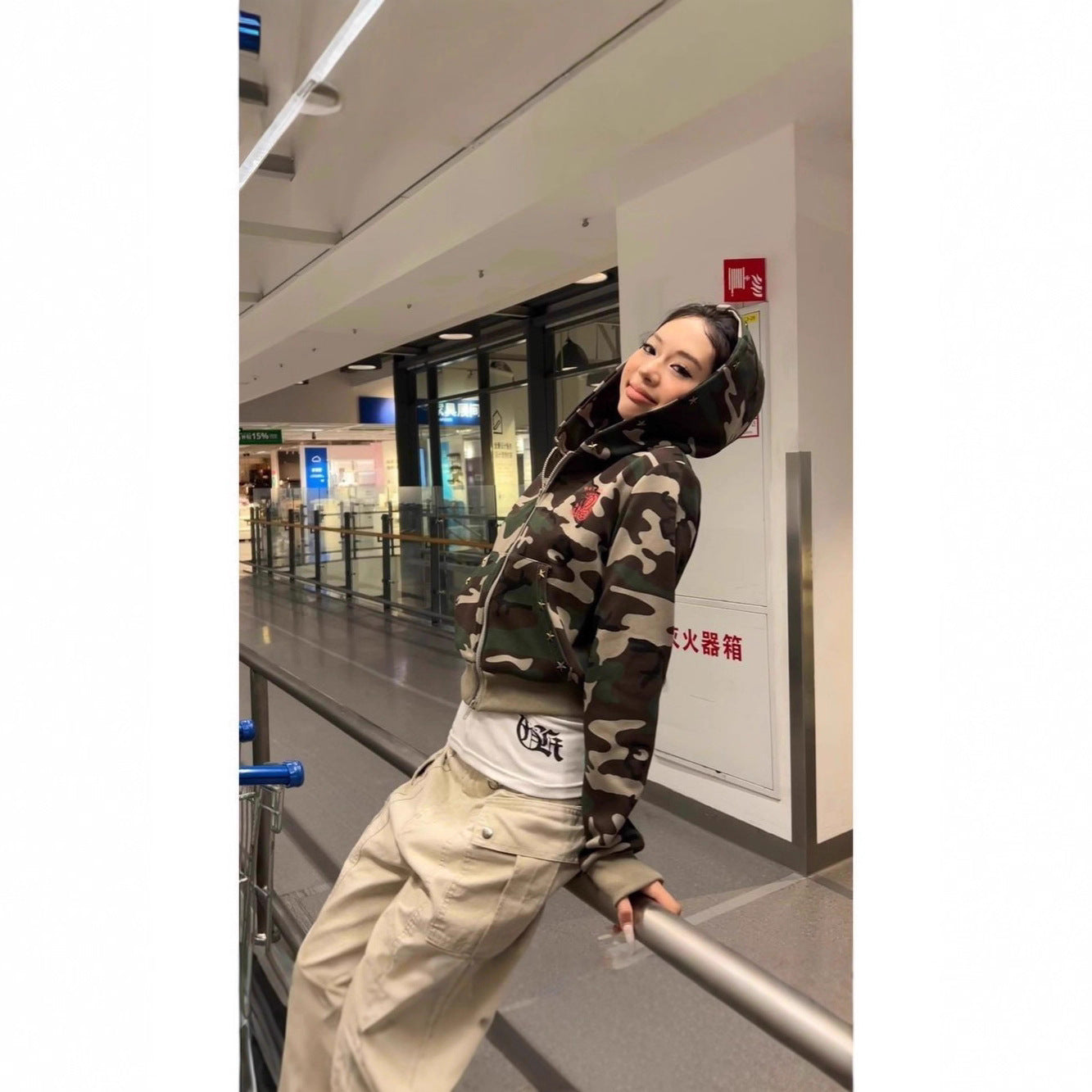 Hoodie Femme Camouflage Léger – Sweat à Capuche Court Casual